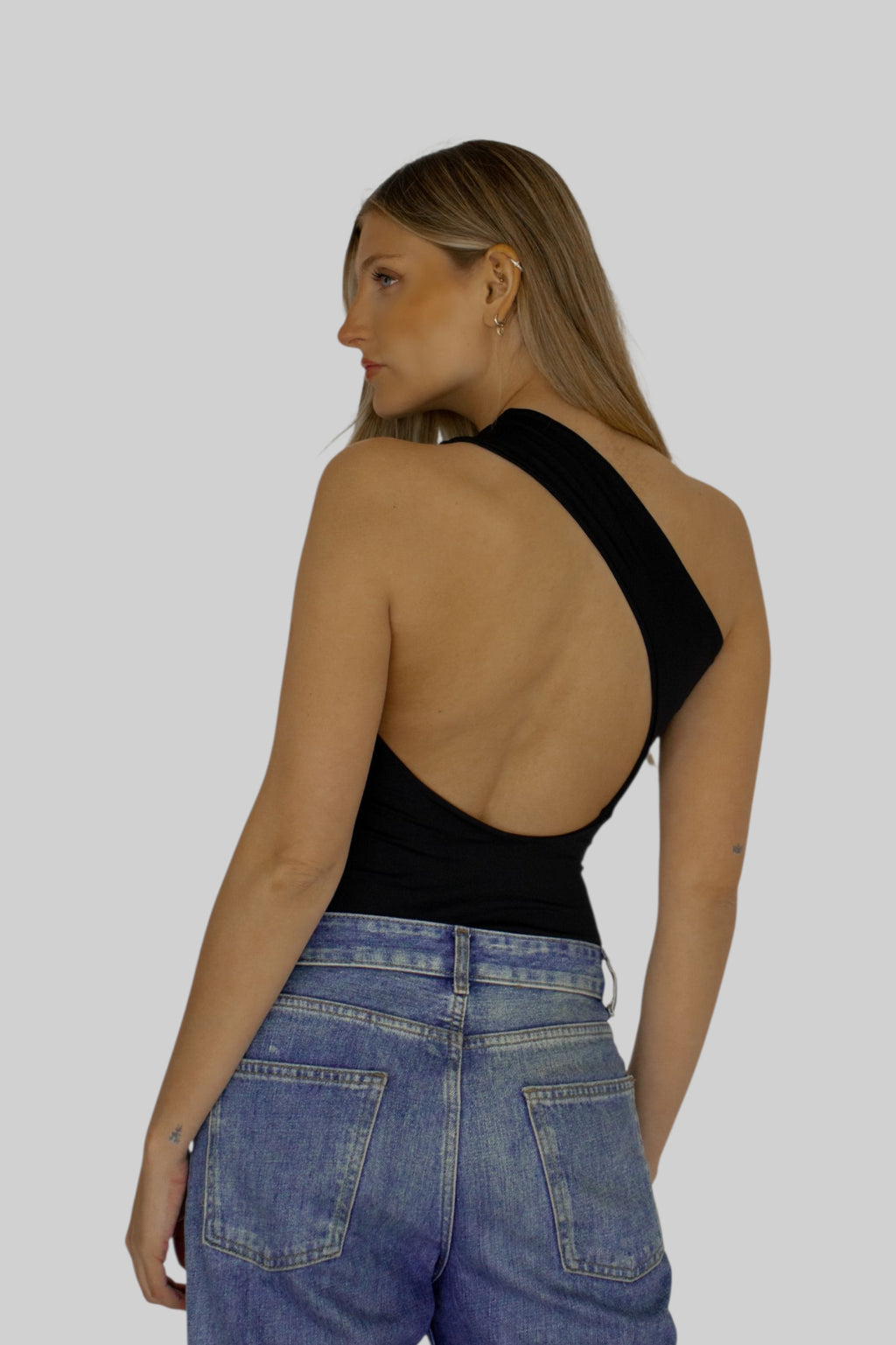 Body elasticado forrado completamente en doble tela sin costuras a la vista y con broches en la entrepierna. Diseño asimétrico en delantero y espalda. . Confeccionado en lycra, tela muy confortable y de alta calidad, no forma piling.