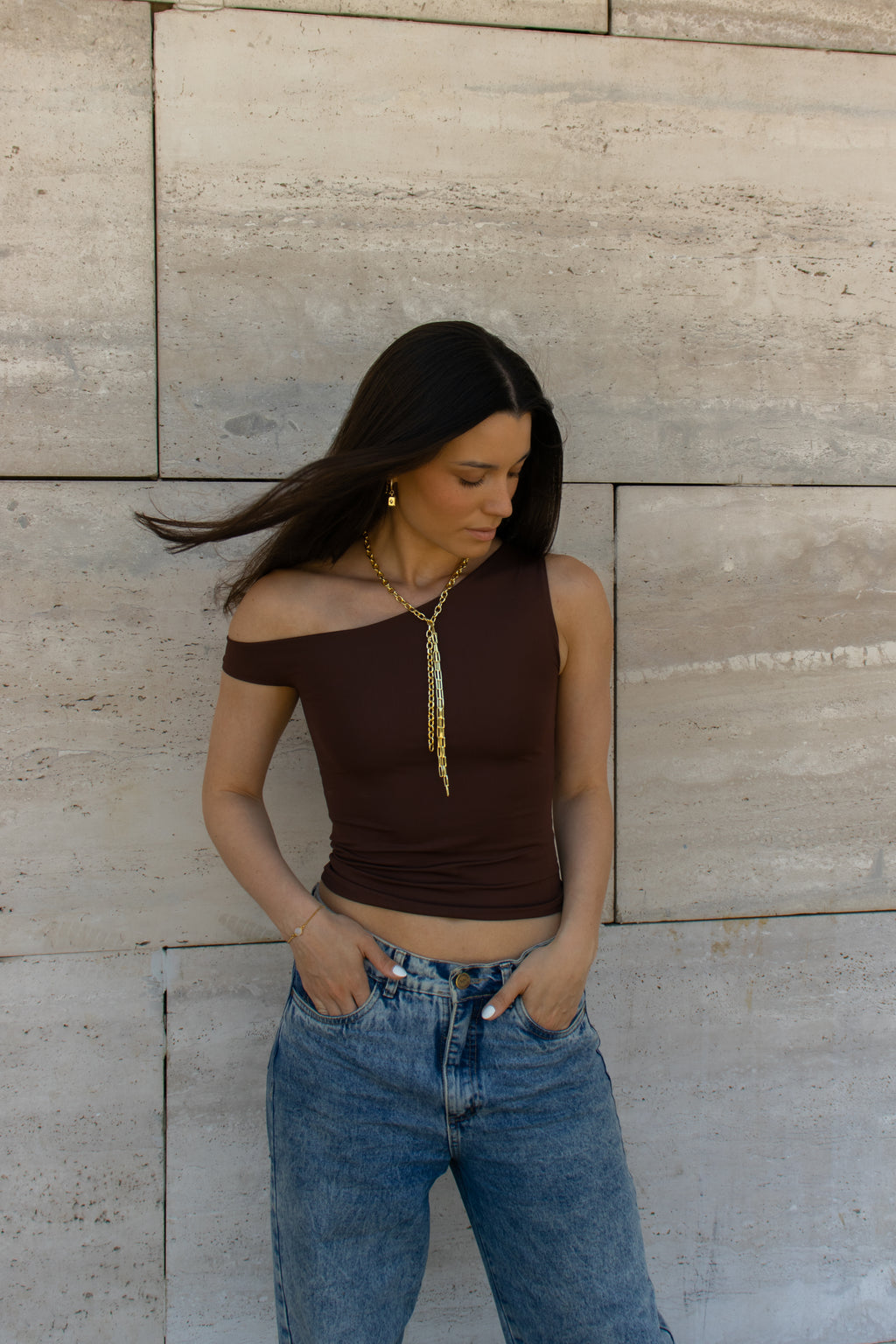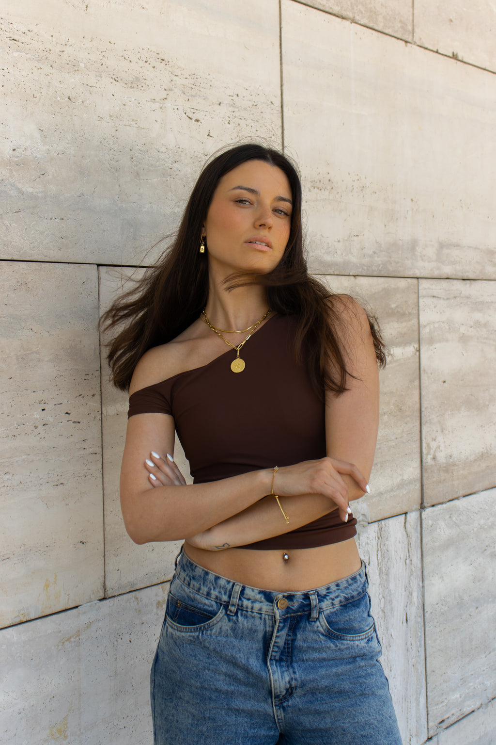 Top asimétrico completamente forrado en doble tela. Confeccionado en lycra especial, tela muy confortable y de alta calida, no forma piling. Confección y materiales de origen nacional.